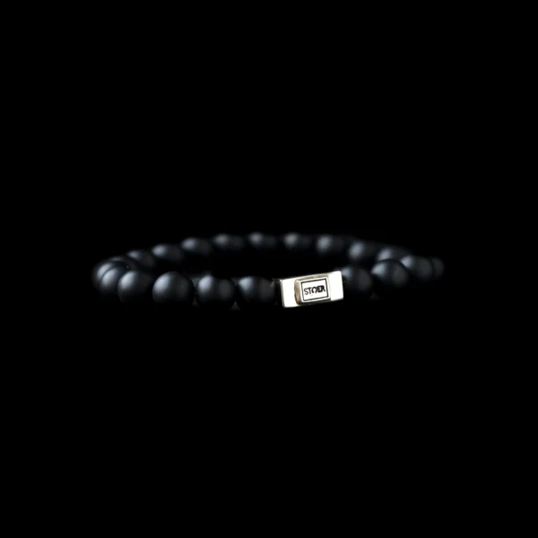 De “Kralen armband Mat Onyx” is met ambachtelijk vakmanschap handgemaakt en voorzien van een subtiel zilveren logo van STOER Bracelets. De matte onyx kralen staan bekend om hun beschermende en stabiliserende eigenschappen, waardoor deze armband niet alleen een modieuze keuze is, maar ook een betekenisvol accessoire.