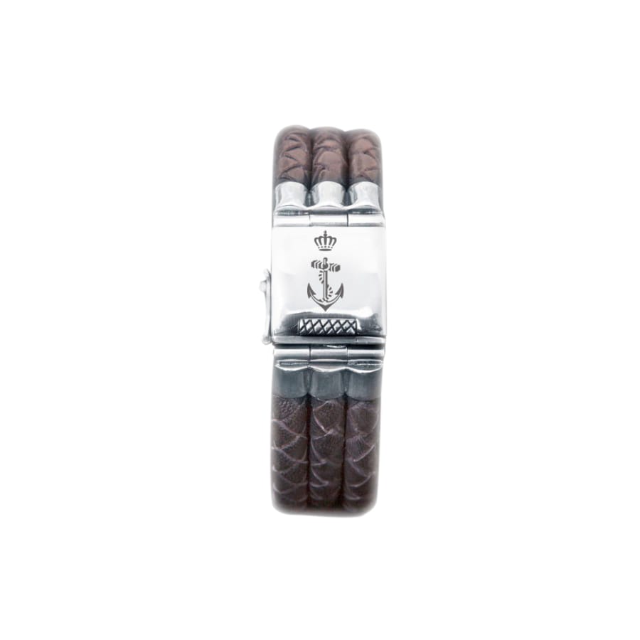 De armband is vervaardigd van hoogwaardig leer en straalt vakmanschap uit in elk detail. Het maritieme ontwerp weerspiegelt de kracht en verbondenheid van de Koninklijke Marine. De subtiele details zijn geïnspireerd door het embleem en de tradities van deze eerbiedwaardige organisatie.