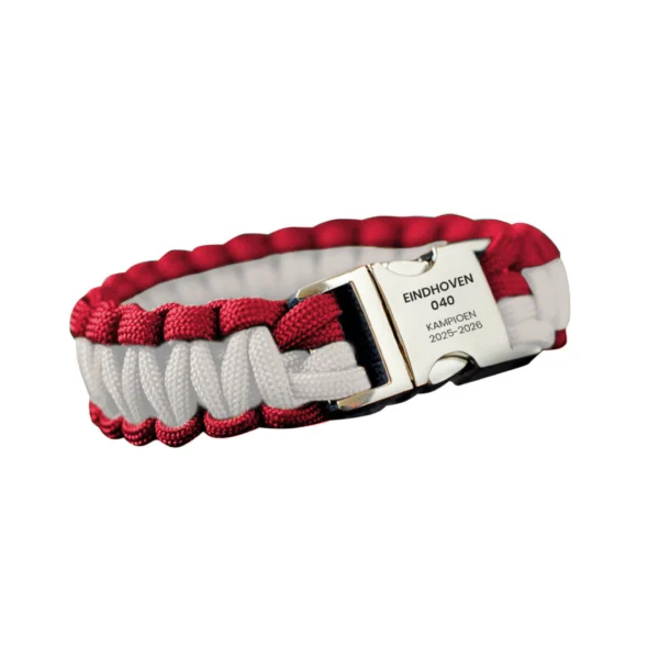 Vier het kampioenschap van 040 met een armband vol karakter. De Paracord Eindhoven 25-26 is handgemaakt in de dagbesteding in Nederland en staat voor trots, vakmanschap en clubgevoel. Een stoere armband voor echte 040-supporters, afgewerkt met de persoonlijke service waar STOER Bracelets om bekendstaat. Verkrijgbaar in verschillende polsmaten voor de perfecte fit.